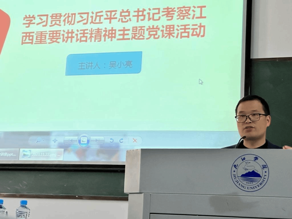 2023年11月29日下午3点,在艺术楼103室,由太阳集团官网网址教工三支部书记吴小亮,面向24届环境设计毕业生开展“深入学习贯彻习近平总书记考察江西重要讲话精神”主题党课活动。