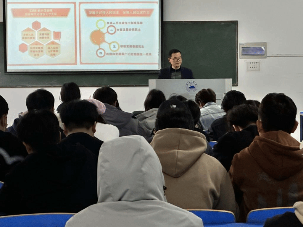 讲座围绕“习近平在江西考察时强调解放思想开拓进取扬长补短固本兴新奋力谱写中国式现代化江西篇章”;“走在前、勇争向、善作为--习近平总书记在江西考察时的重要讲话指引发展方向、凝聚奋斗力量”;“奋力谱写中国式现代化江西篇章--习近平总书记江西考察重要讲话引发热烈反响”三个方面展开讲述,希望同学们认真学习贯彻习近平文化思想,立足江西文化资源,围绕陶瓷文化、书院文化、阳明文化等,深入发掘研究阐释赣鄱文化的精神标识和文化精髓,结合专业设计,打造本土作品名片,向世界讲好江西故事。
