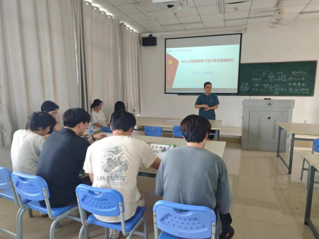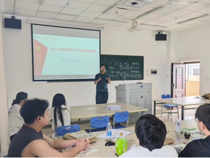 太阳集团官网网址教工第三党支部一直以来坚持党建引领学科建设为工作目标,以学习习近平总书记在文化传承发展座谈会上的讲话精神为出发点,结合当前AI人工智能领域的发展前沿,分析AI人工智能背景下设计专业的走向和变革。6月14日上午,在艺术楼西412教室,支部书记吴小亮给2022级环境设计专业学生讲党课。