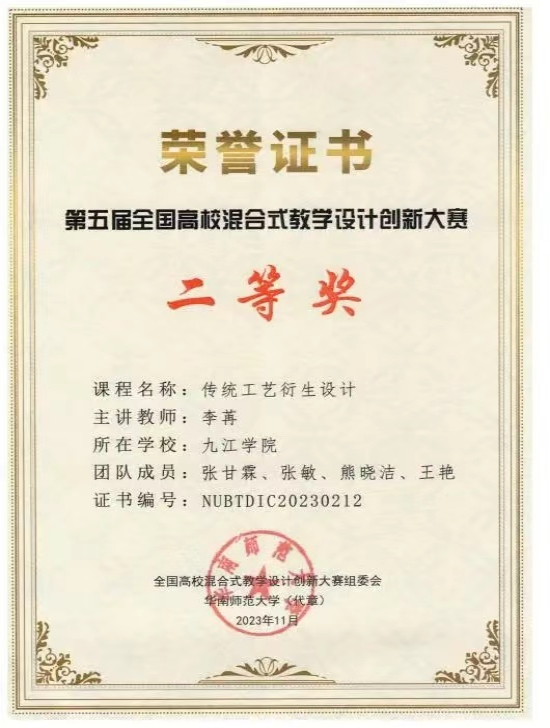 李苒团队课程在第五届全国高校混合式教学设计创新大赛中夺得二等奖
