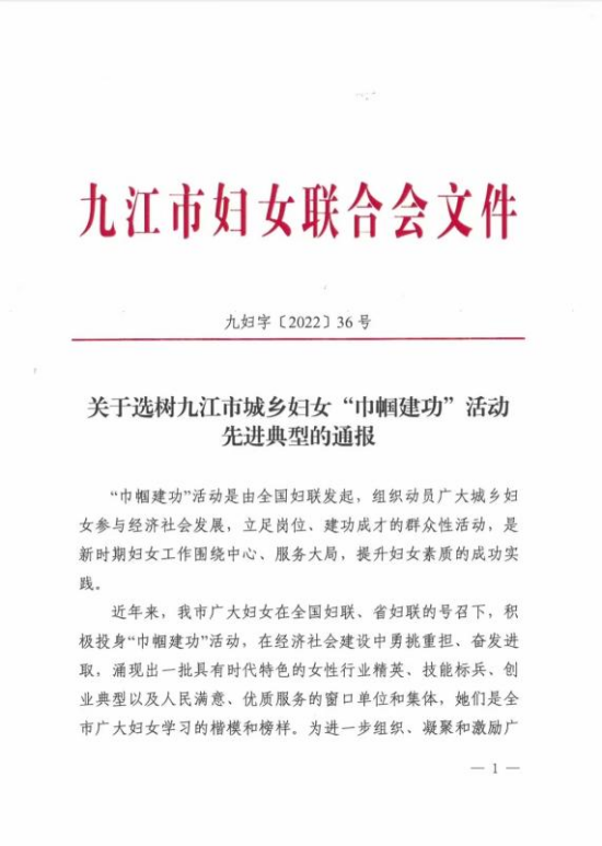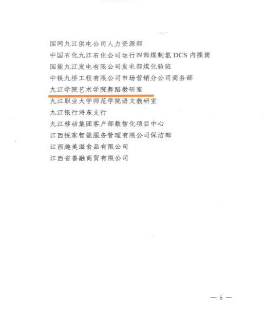 舞蹈教研室获九江市第十三届“巾帼文明岗”称号