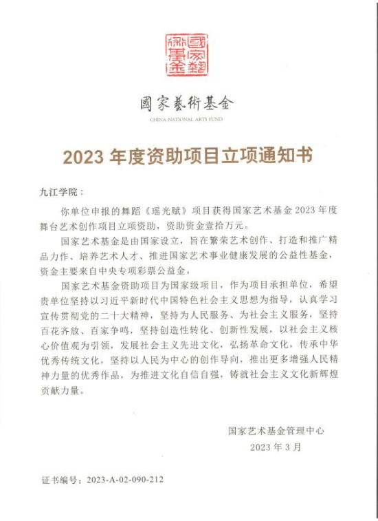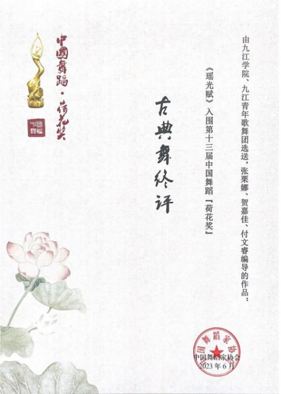 原创舞蹈《瑶光赋》入围第十三届中国舞蹈《荷花奖》古典舞终评,并获国家艺术基金2023年度资助项目立项