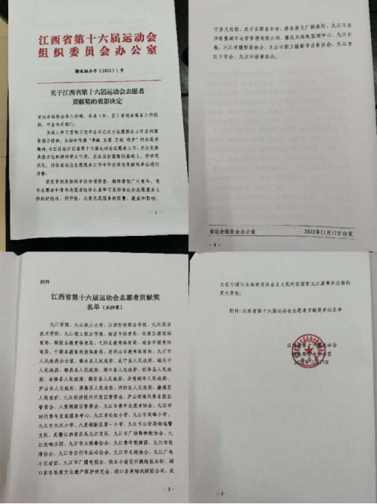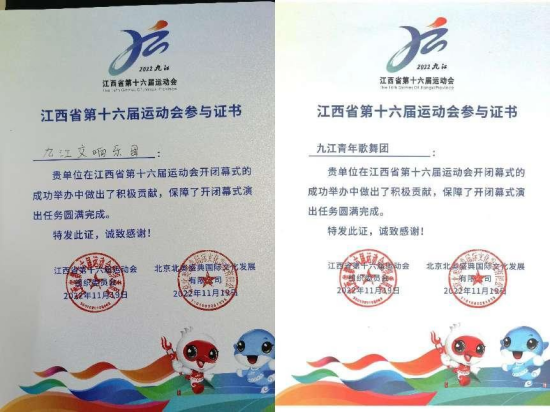 九江交响乐团、九江青年歌舞团被授予江西省第十六届运动会志愿者贡献奖