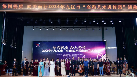 学院有效开展人文素质培养和美育教育。自2018年成立九江交响乐团以来,学院连年举办高雅艺术演出活动,着力打造高端校园文化和美育品牌。先后与九江市教育局共同主办“协同提质、向美而行”巡演音乐会,深入九江市各县区中小学协同实施“艺术素养提升计划”等高雅艺术普及活动。通过参加社会公益活动,在提升学生文化艺术修养的同时,培养提高学生实践创新能力,引导学生接触社会、服务社会。