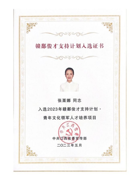 张栗娜入选2023年赣鄱俊才支持计划青年文化领军人才培养项目
