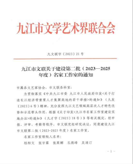 张甘霖、张栗娜分别被评为九江市名家工作室领衔人