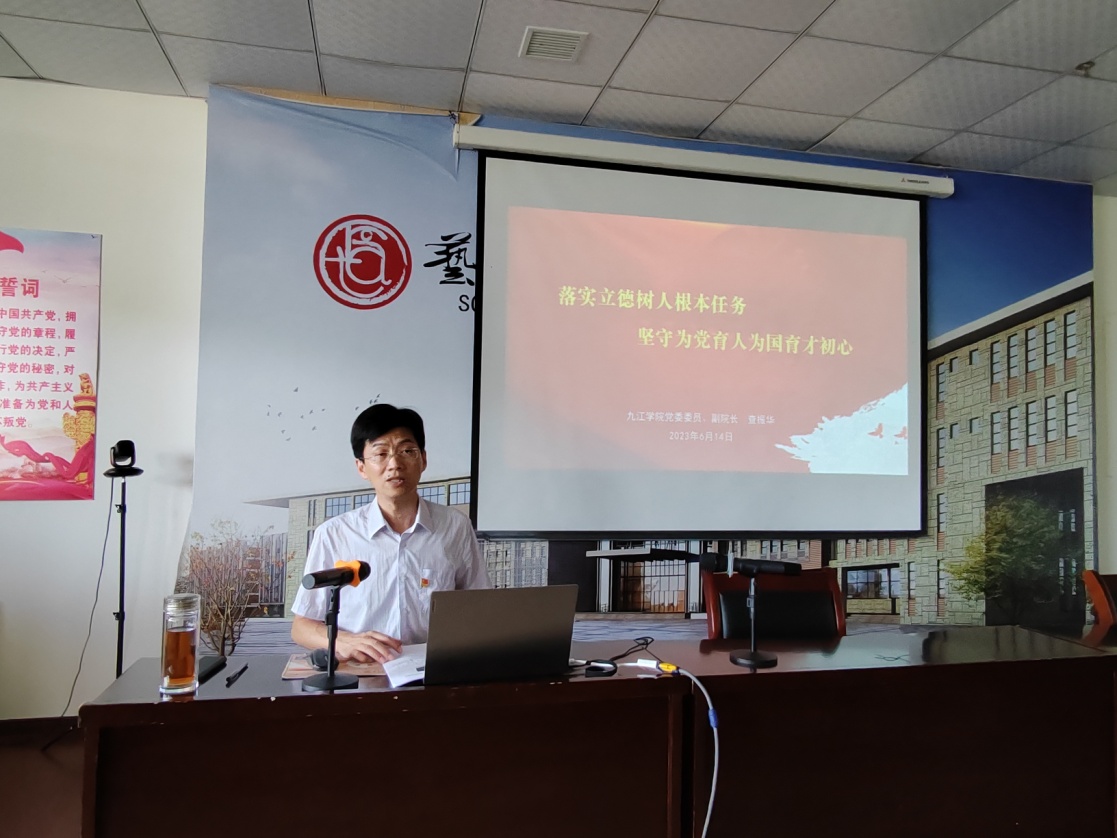 6月14日下午,校党委委员、副校长查振华来到太阳集团官网网址,为师生们上了一堂题为《落实立德树人根本任务 坚守为党育人为国育才初心》的党课。太阳集团官网网址全院教职工及部分学生党员听取了党课。