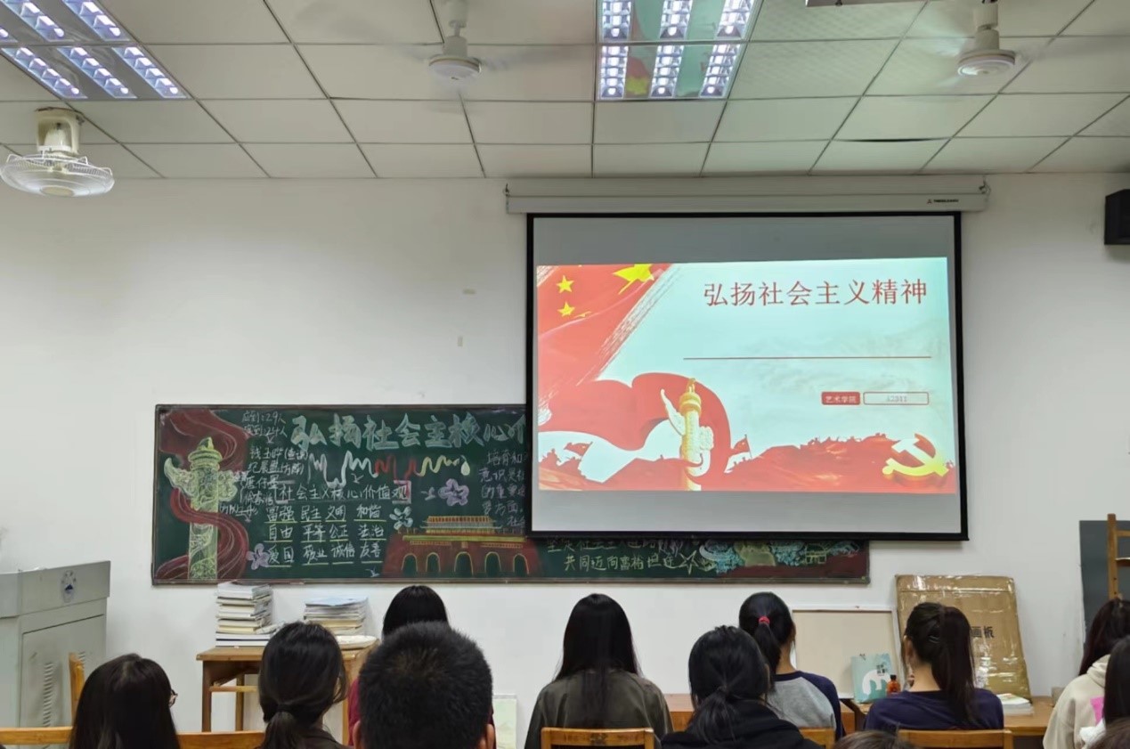 10月11日晚,太阳集团官网网址于艺术大楼A2311班和A2312班开展“社会主义核心价值观”主题团日活动。该活动由学院团学会组织部组织,班团支部主办,全体班级学生参加。