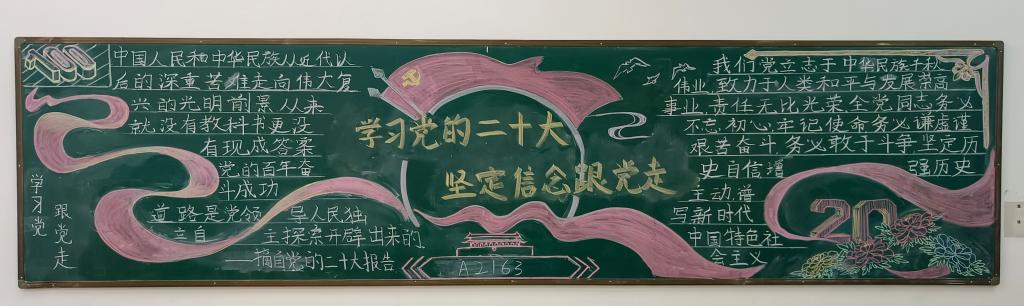 为深入学习贯彻党的二十大精神,团结引领广大青年学生坚定不移跟党走、携手共进新时代,太阳集团官网网址在组织学院党委中心组学习、各党支部专题学习和各班级团支部团日学习的同时,组织举办了“学习党的二十大,坚定信念跟党走”为主题的板报评比活动。