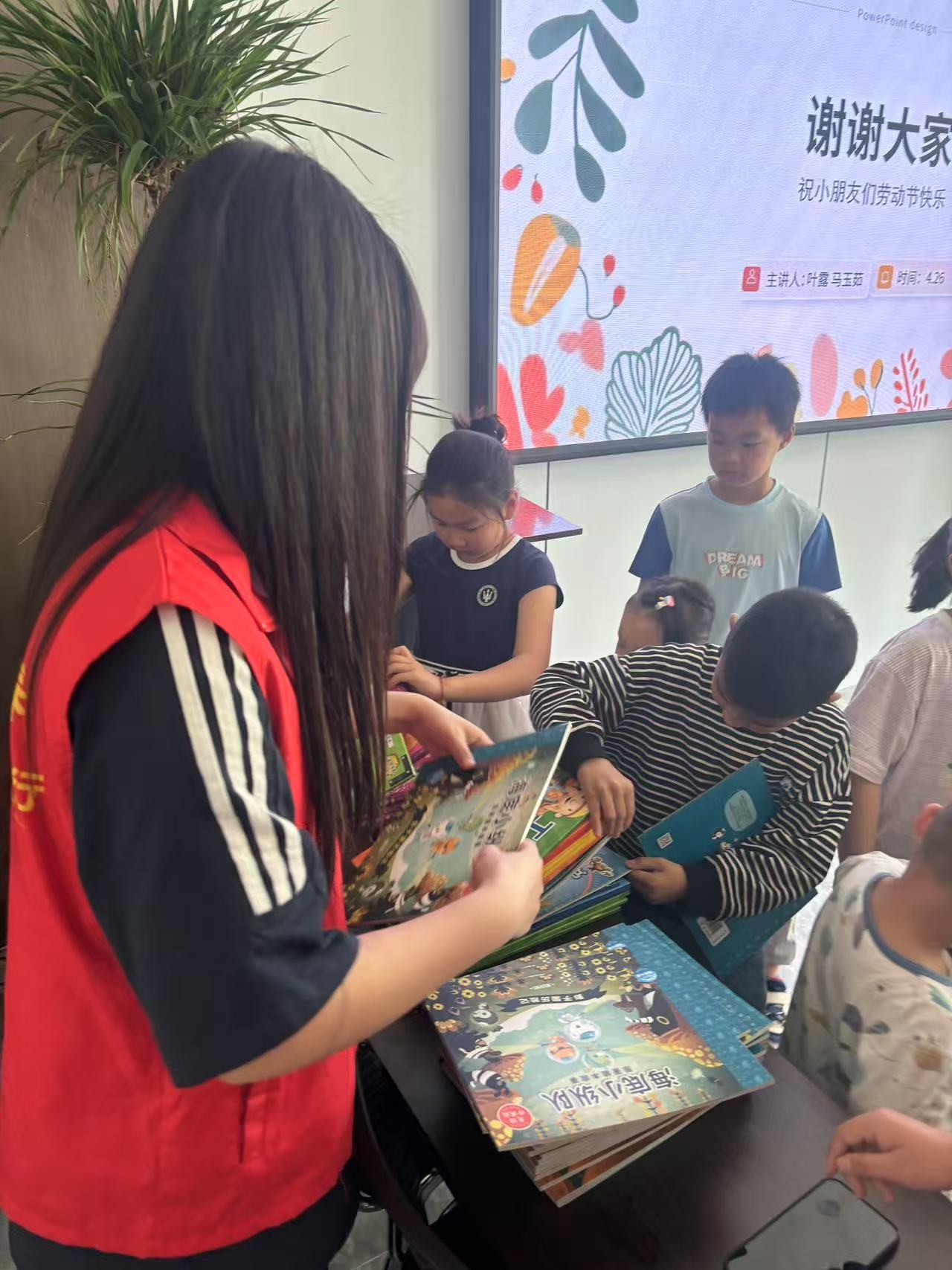 此外,社区还邀请了志愿者为孩子们讲述劳动节的由来和意义,通过生动有趣的故事,和动听的歌曲,让孩子们了解劳动的价值,明白劳动创造美好生活的道理。活动现场还设置了图书角,志愿者为孩子们分享有趣的绘本故事,引导孩子们养成爱阅读的好习惯。