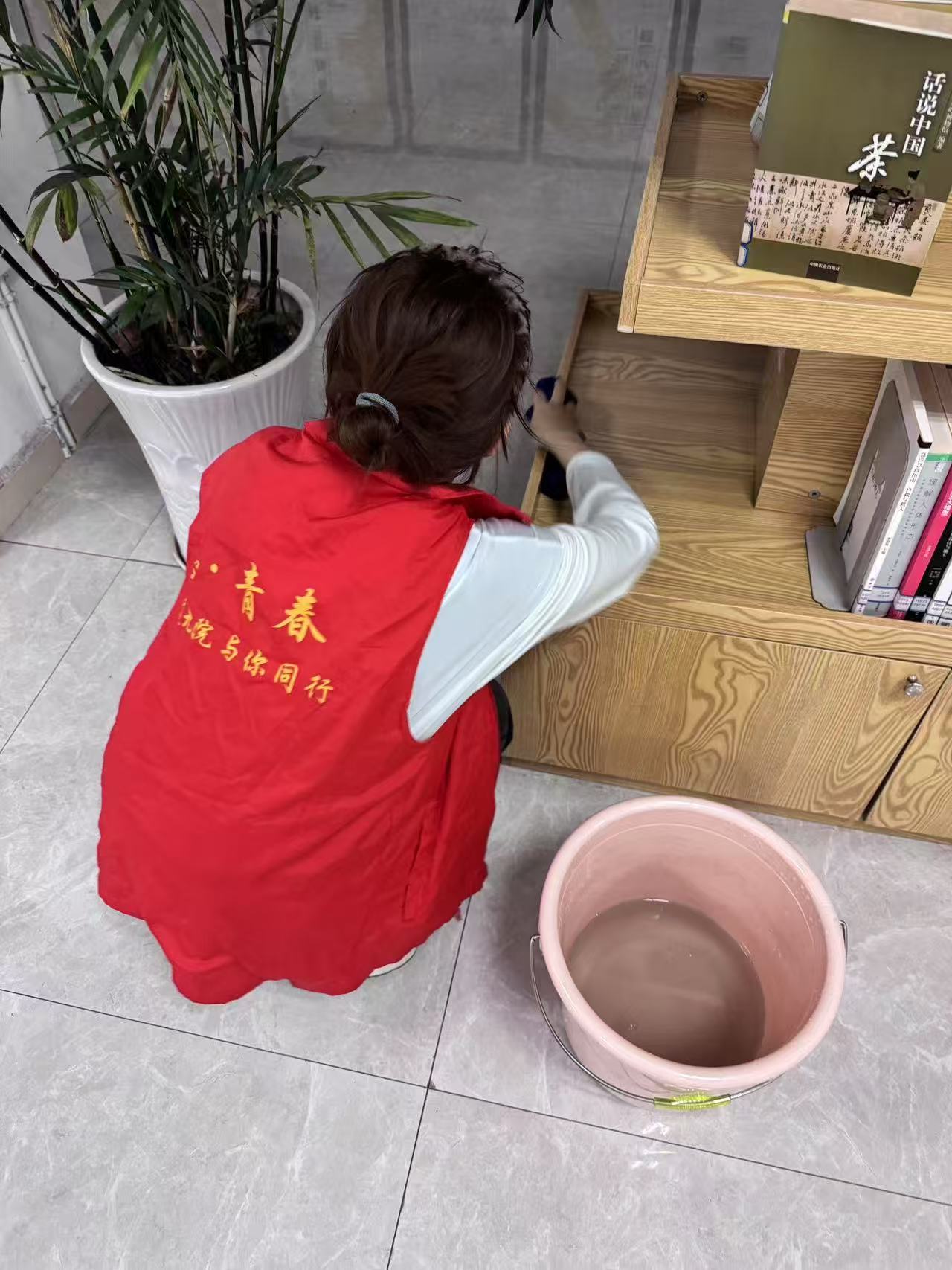 除了清洁工作,志愿者们还主动承担了图书馆的环境美化任务。他们在图书馆的各个区域摆放了绿植,为图书馆增添了一抹生机。同时,他们还张贴了一些温馨的提示标语,提醒师生们爱护书籍、保持安静,营造出更加和谐的阅读氛围。