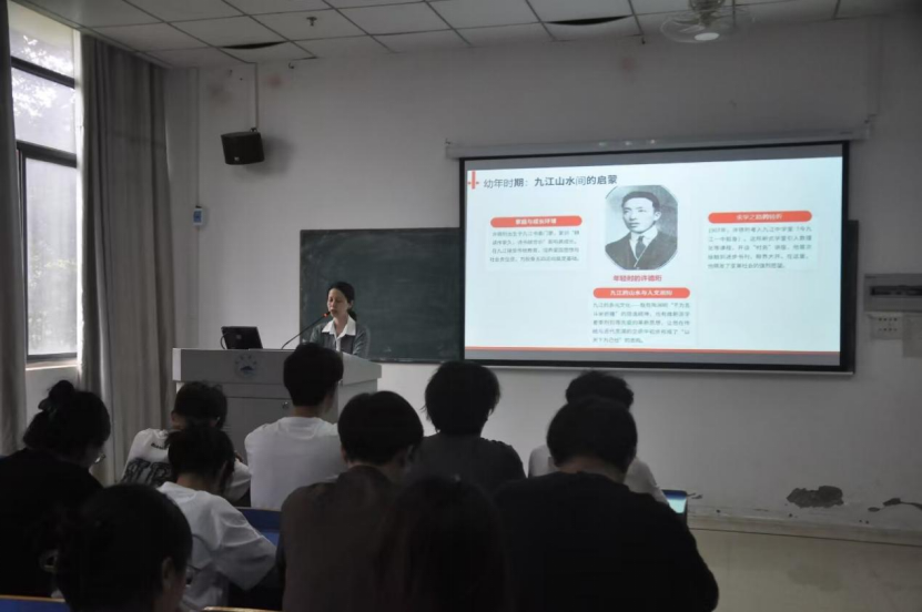 在讲座中,杨晅还特别讲述了九江籍革命先辈许德珩的传奇故事。作为五四运动的重要参与者,许德珩先生执笔起草文言版五四宣言,以笔为剑,唤醒民众。此后,他投身于波澜壮阔的革命事业,成为九三学社的创始人之一。在漫长的岁月里,许德珩先生始终坚定地与中国共产党携手同行,历经风雨考验,最终在1979年加入中国共产党。1990年,先生与世长辞,他的骨灰撒入九江长江段,魂归故里,其精神却永远激励着后人。杨晅还介绍到,九江在江西党史中占据着重要地位,作为江西第三个建立党组织的地方,九江党小组(中共南昌特支第二小组)的成立,与九江产业工人在五四运动中展现出的强大力量密不可分,这些工人阶级的觉醒与抗争,为党组织的建立创造了良好条件。