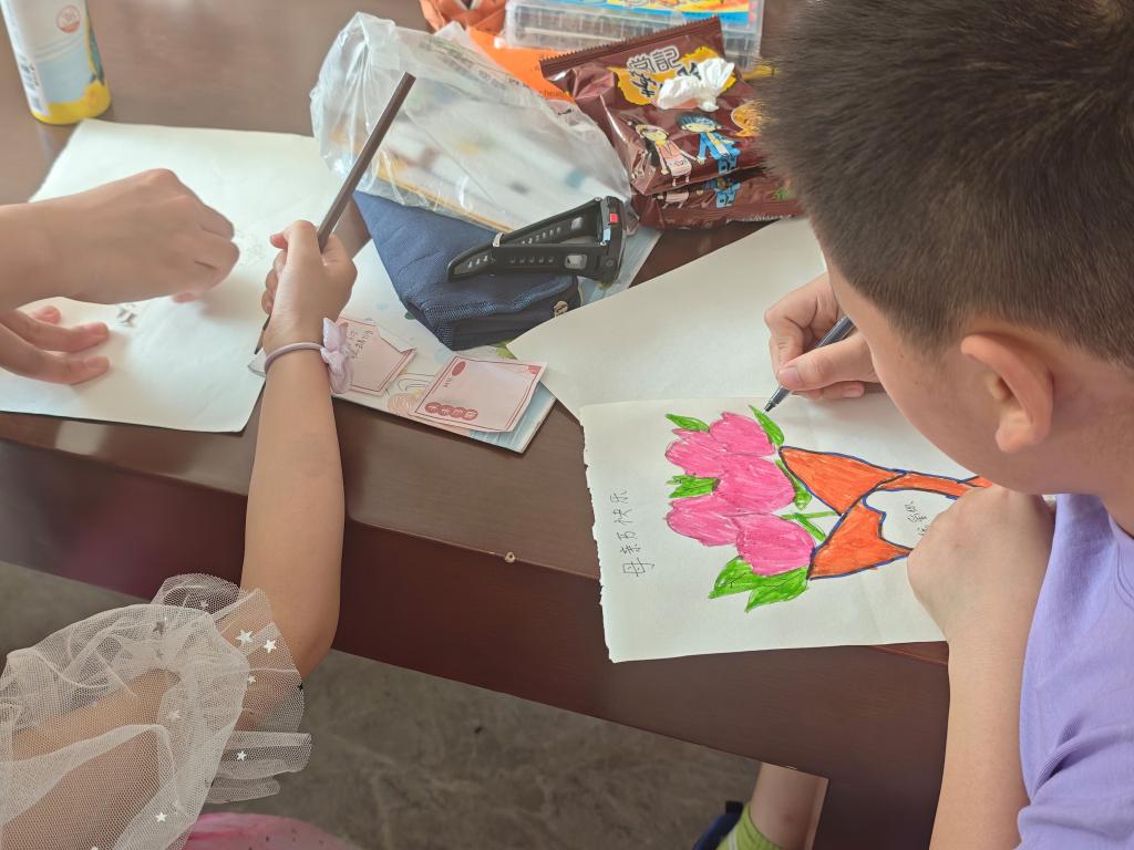 除了绘画教学,志愿者们还结合艺术专业特长,教孩子们学唱歌曲《小美满》。“我们小手拉大手,今天加油向昨天挥挥手.…..…”轻快的旋律中,孩子们在志愿者带领下逐句练习,并用手势舞表达对家庭温暖的感悟。6岁的圆圆兴奋地说:“回家要唱给妈妈听,她一定会开心!”社区家长李女士感动地表示:“孩子第一次独立准备礼物,这份心意比什么都珍贵。”
