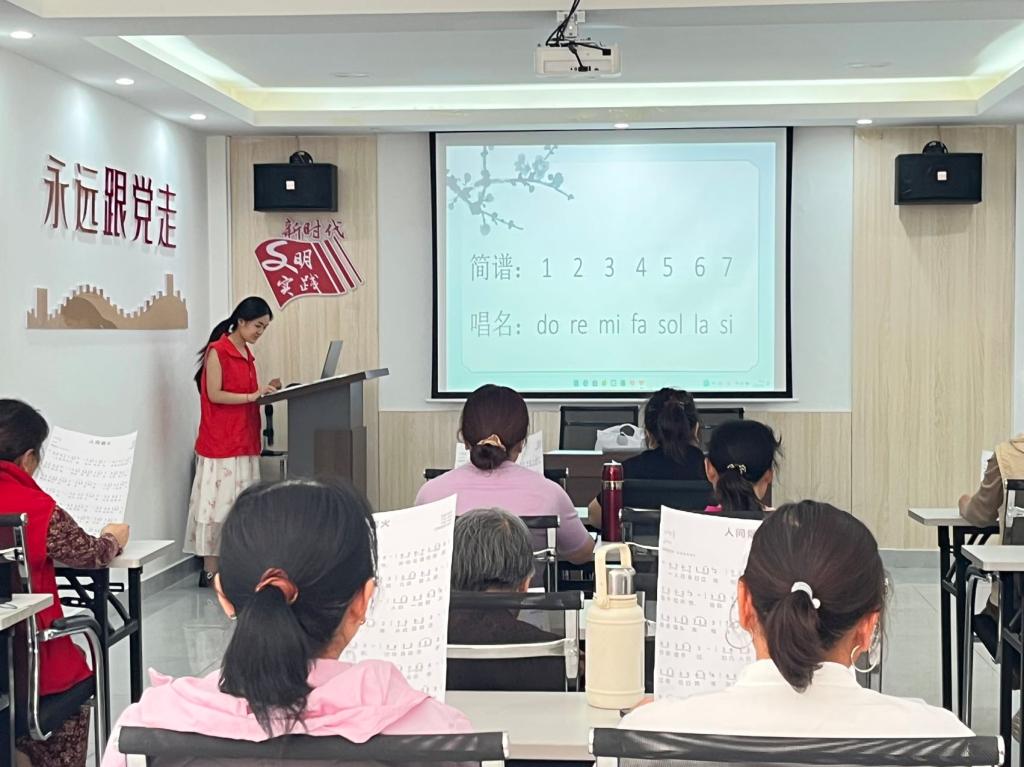 活动伊始,志愿者们便以亲切的问候和灿烂的笑容迅速拉近了与老人之间的距离。在唱歌教学部分,志愿者们精心挑选了《人间烟火》这首和舞蹈伴奏相同的歌曲,逐句耐心教唱。老人们兴致勃勃,虽有些发音不准、节奏把握不稳,但在志愿者的鼓励下,大家越唱越起劲儿,《人间烟火》的歌声悠扬歌声在社区上空回荡。