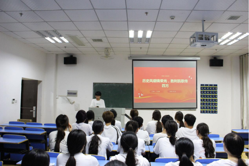 与会同学首先集体观看了习近平总书记于9月3日发表的重要讲话视频。总书记深刻阐述了抗日战争的伟大意义和历史地位,强调“中国人民抗日战争是艰苦卓绝的伟大战争”,并高度评价了抗战期间中国人民展现出的爱国情怀、民族气节、英雄气概和必胜信念。讲话内容深深感动了在场同学。