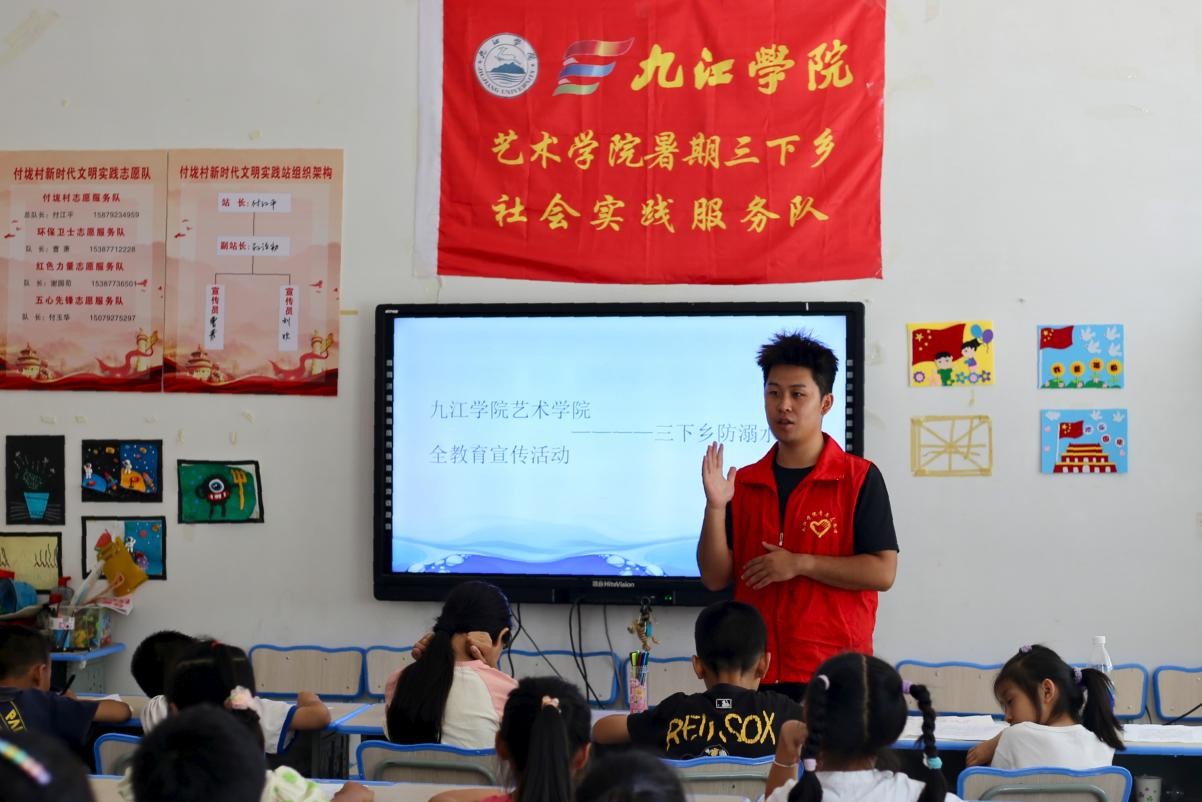 实践队长梁津瑞在给小朋友普及防溺水知识 徐房清