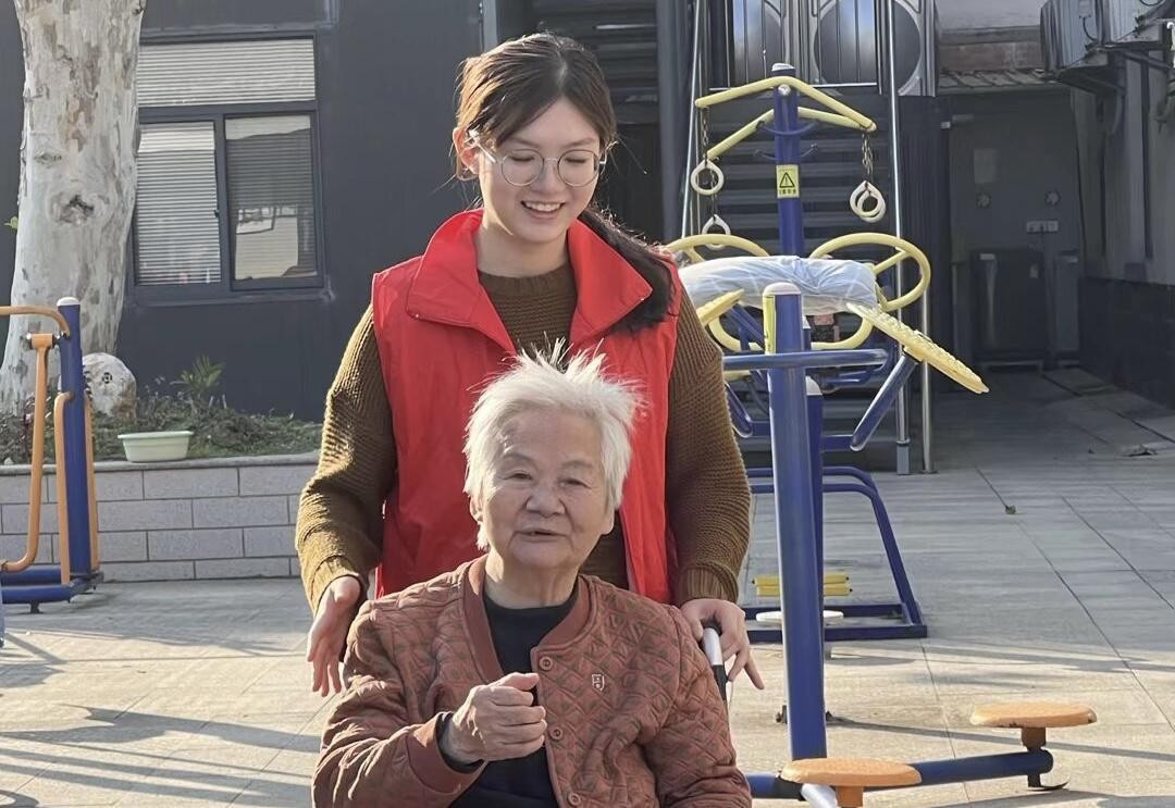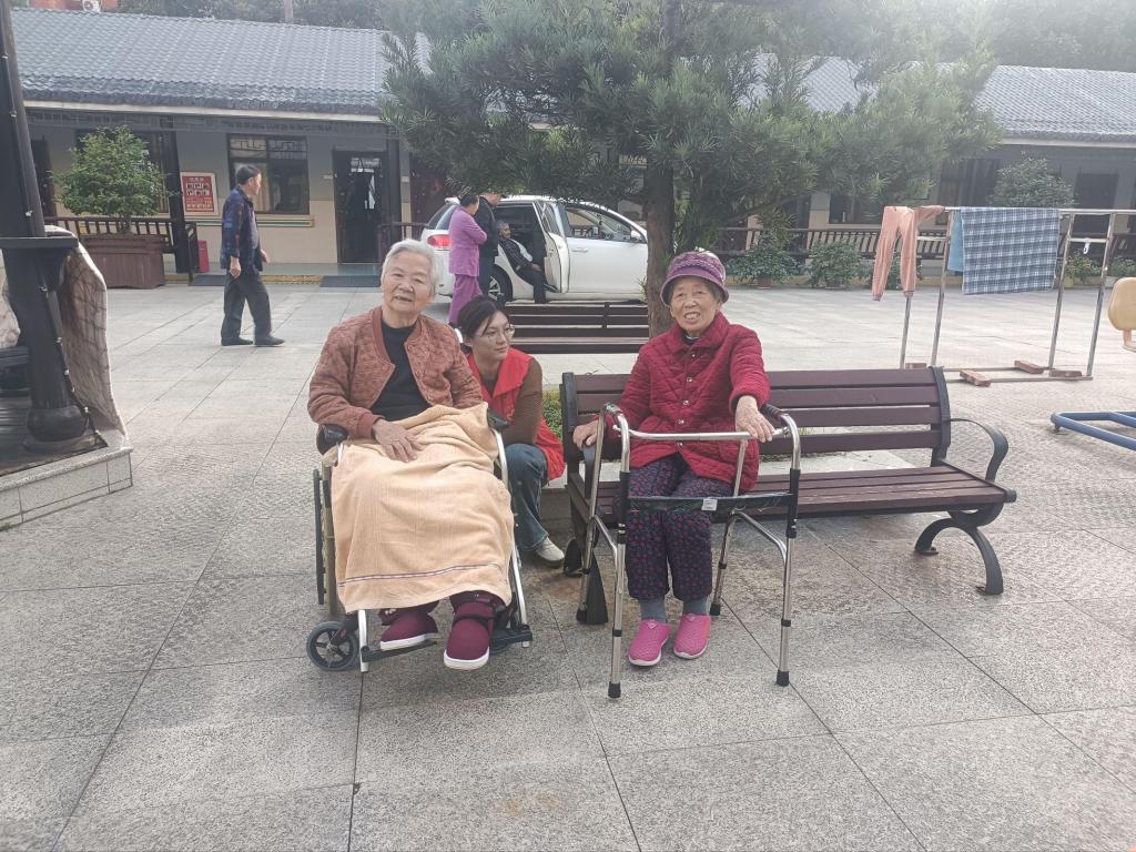 考虑到部分老人行动不便,志愿者们小心翼翼地推着轮椅,陪伴他们在敬老院的庭院中漫步。暖阳洒身,暖意融融,志愿者们时而为老人讲述校园里的新鲜事,时而围在身旁听老人哼唱经典老歌——醇厚的歌声与清脆的笑声交织在一起,回荡在庭院的每个角落。途中遇到路面不平之处,志愿者们格外谨慎,稳稳扶住轮椅,轻声叮嘱老人注意安全,用细致入微的照顾,让老人们真切感受到家人般的温暖。