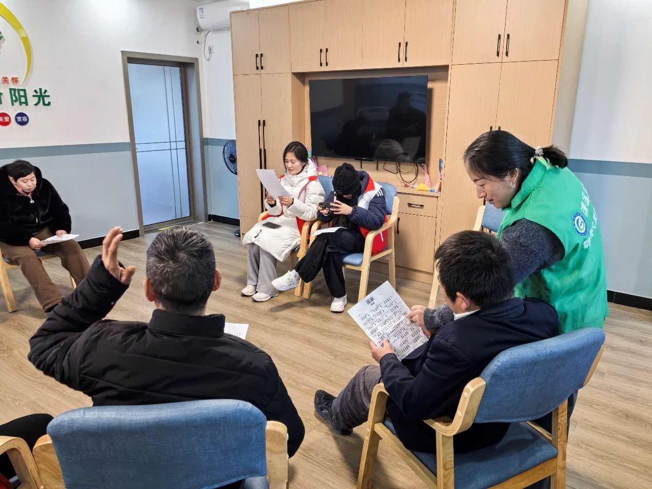 《萱草花》的演唱则唤起了老年人对亲情与家庭的深切感触。许多老年人在跟唱时眼中含泪,谈及自己养育子女的点点滴滴,表达对亲情的珍视与对当下生活的感恩。志愿者不仅在教唱中注重音乐表达,更在倾听中传递陪伴的温暖,让此次活动不再局限于教学,更升华为一次心灵之间的真诚对话。