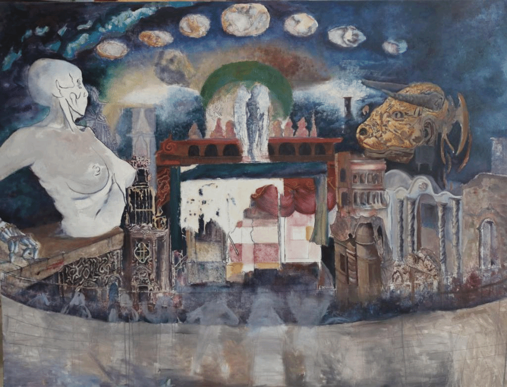 作品说明:《天空剧院》是以矛盾创作的核心,具有哲学色彩的主题。由于我对于人生、自己、未来也有着困惑,对于美和艺术本身的见解也并不成熟,选择这样一个矛盾的主题以超现实的手法陈述人类内心的欲望与向往,内心欲望无法遏制的,人类在生命也无时无刻不在与欲望斗争与妥协。
