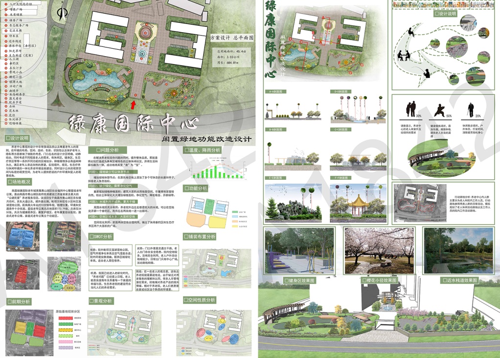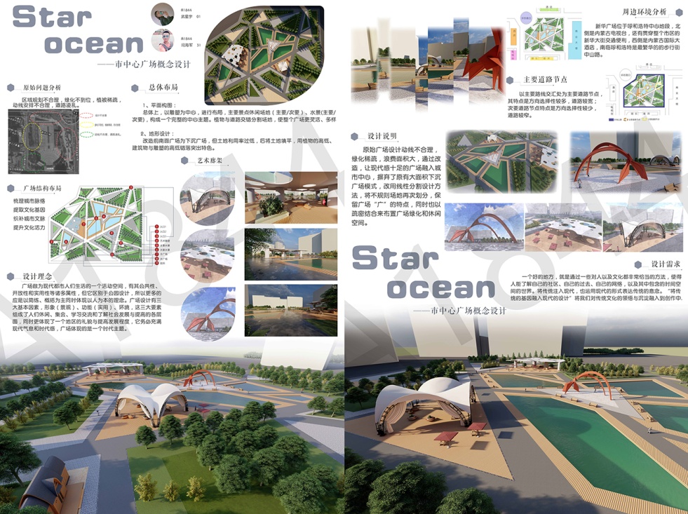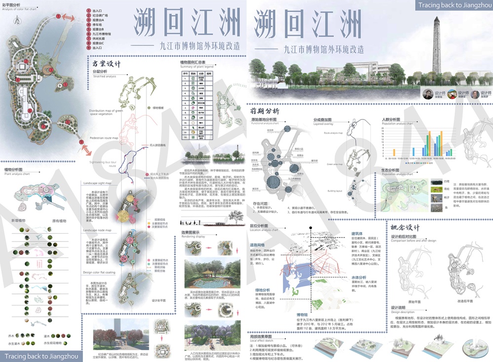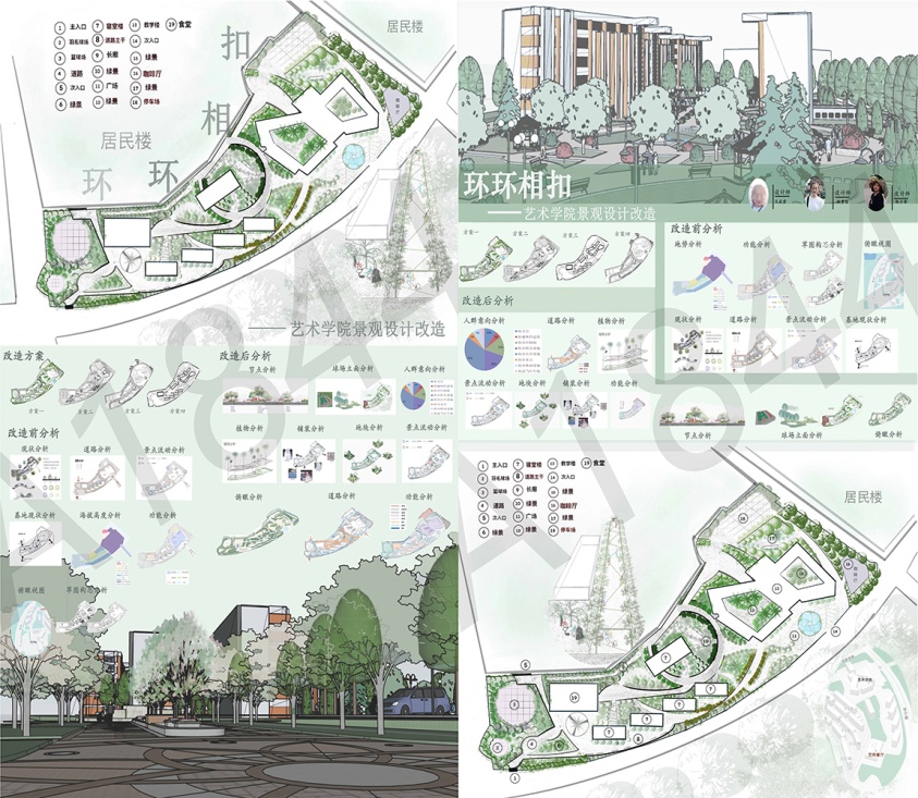 【不足】设计功能性仍需进一步考虑全面;对周边环境和基地关系的处理没有形成习惯性思维;植物运用、铺装设计的细化深入不够;整体色彩的处理不够高级;3D软件的熟练运用能力有待提高。