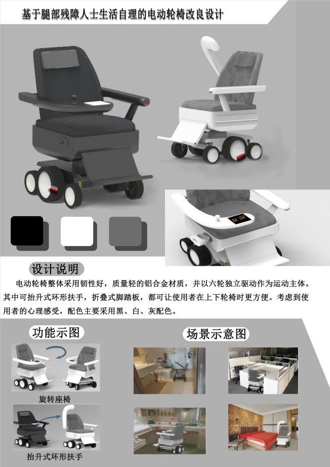 作品名称:基于腿部残障人士生活自理的电动轮椅改良设计