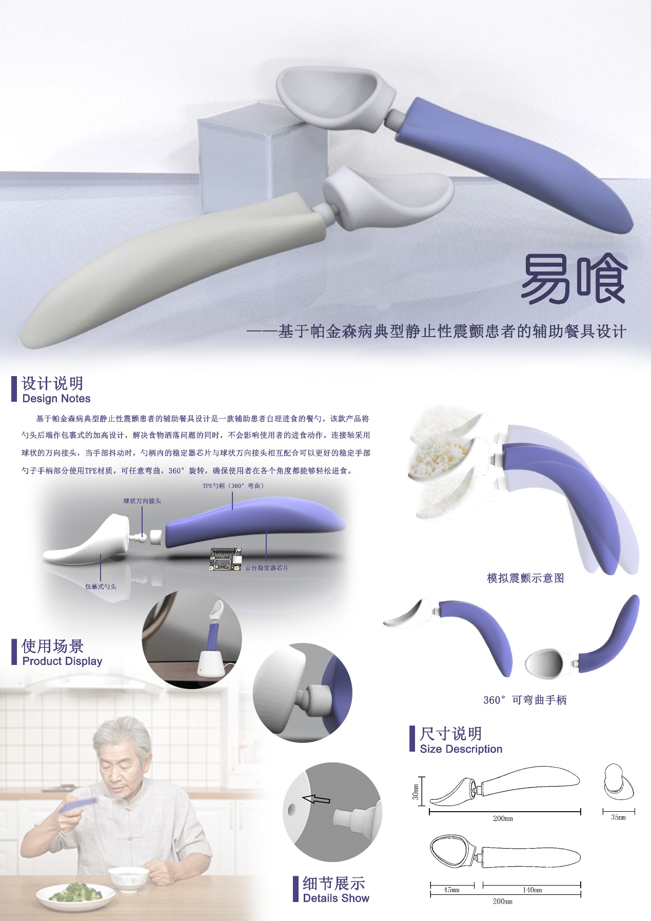 作品名称:易喰——基于帕金森病典型静止性震颤患者的辅助餐具设计