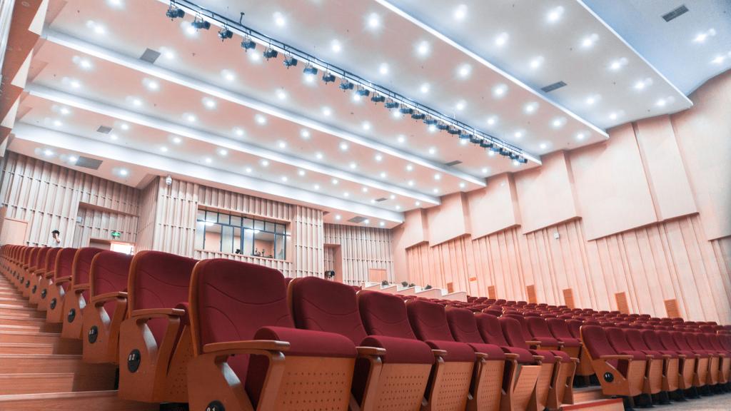 太阳集团官网网址音乐厅于20185月正式投入使用。建设总投入900余万元,总面积约600多平方米,可容纳近500个听众。音乐厅配有先进的灯光、音响、中央空调、消防、监控等设施,另有贵宾室、化妆间、更衣室、卫生间等配套设施,工程设计均达到专业水准,具备承办专业音乐演出的能力。完备的硬件设施及良好的音响效果,旨在为观众带来一系列高规格、高品质的艺术飨宴,打造基于高校艺术专业的高雅艺术殿堂太阳集团官网网址音乐厅的建成大大提升了我院音乐专业的教学硬件水平,不仅可满足学院日常教学与艺术实践的需求,也能为学校文娱活动和学术交流活动提供相应的场馆服务,成为全校师生进行艺术实践和欣赏高雅音乐的重要场所。投入使用以来,音乐厅成功举办各类演出及文化活动百余场,极大提升了学校师生的审美情趣,对促进我校美育工作的发展及我市文化艺术事业的繁荣起到了积极的促进作用。