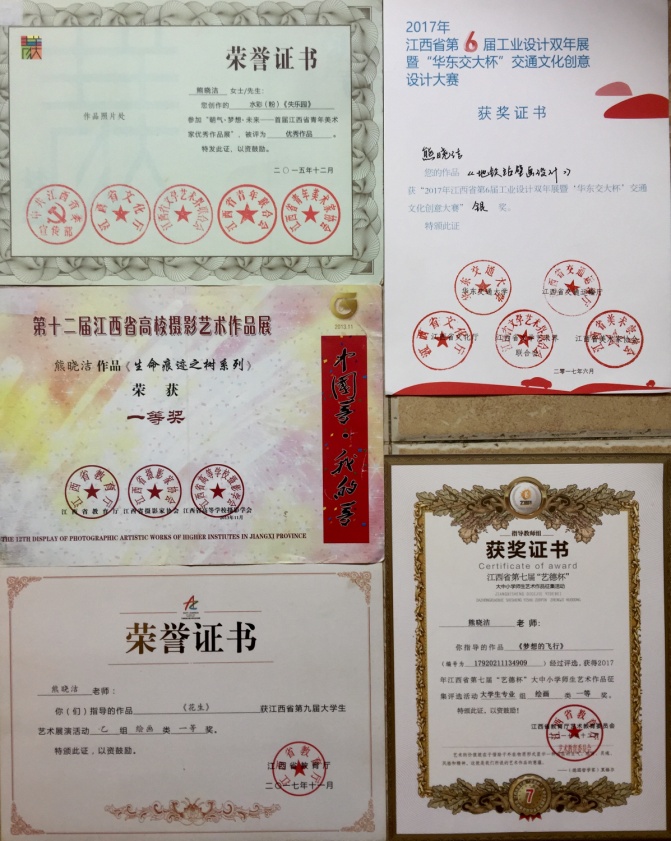 10、 2014.11, 论文《新锐影像艺术对大学精神建设的促进作用》获江西省第八届大学生艺术展演教育科研论文 二等奖(省教育厅)。