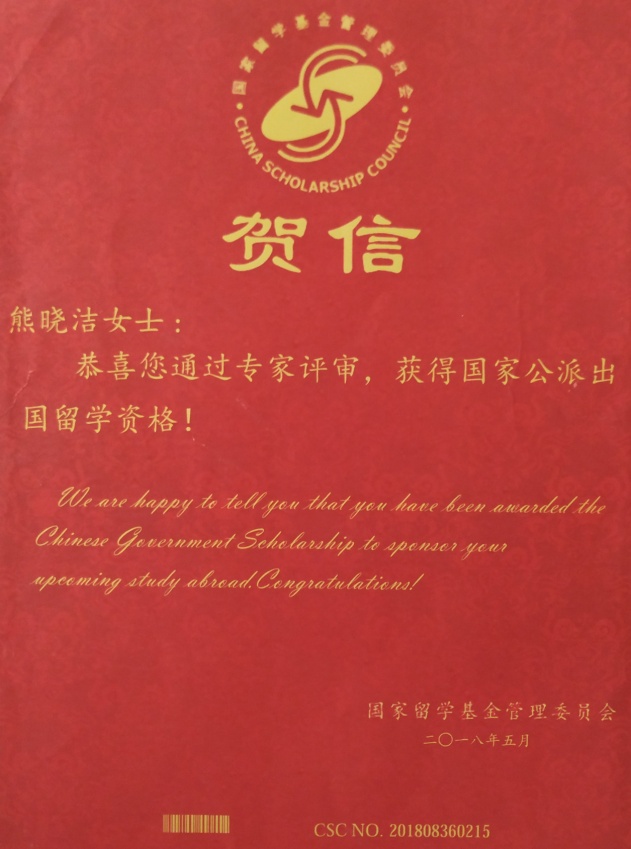 国家留学基金委“艺术特殊人才”培养项目 获奖证书