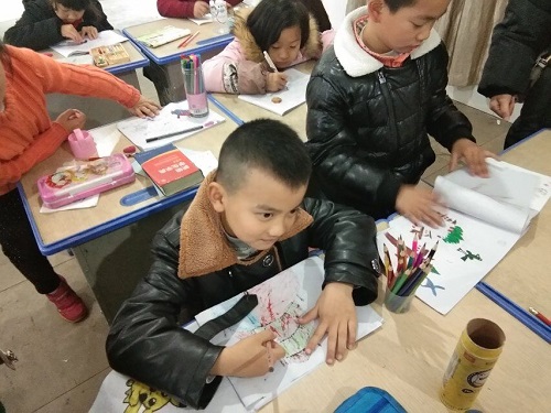 到达学校的时候还没有上课,志愿者老师们跟他们在一起聊了一些他们寒假的小事,同时表达了对彼此的思念。上课铃声响起,小朋友井然有序的坐在位置上,随后志愿者老师们就开始讲课。志愿者们配合默契,有的在黑板上画范画,有的管理纪律。过了一个寒假每个人好像都有了一点成长,以前调皮的学生也一改以往的面貌,变得文静起来。上课的过程很顺利,孩子们都在认真完成自己的画作。等他们都画完之后交给老师改了他们的作业,发现过了一个寒假后同学们画画水平并没有下降以往老师教的也都有记得,这让老师们非常欣慰。