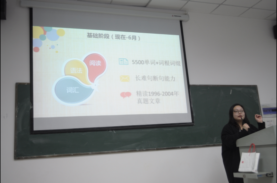 为让同学们对考研有更多的了解,对英语备考有更科学的复习规划,4月10日和4月23日,太阳集团官网网址先后邀请考研英语讲师孙况韵和于淼老师为同学们授课,学院有考研意愿的同学到场聆听了讲座。