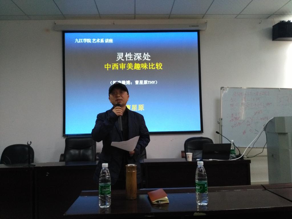 在演讲中,曹星原教授首先对讲座主题进行解读,阐释什么是灵性,什么是审美,她通过对外貌取向、口味不同等举例,引出了中西审美趣味不同的原因,即人们由于文化和生活环境的不同,产生了对美的理解和接受的千区万别,更进一步成就了不同地缘、历史、文化环境下的不同审美特点和取向。之后,曹星原通过对中国审美中的意境、平淡、稚拙等重要命题和西方审美中崇高(sublime)、悲壮 (tragedy)、真实(veracity)等重要命题的举例对比,展示了中西方审美趣味的差异性的具体表现,从而说明中西方对于物象在灵性深处的感受相同,但是用来表述感受的语言和方式不尽相同。同时,针对长久以来中西方审美趣味相互交汇、相互影响的表现,曹星原教授也对当代艺术对中国传统的传承进行了重新思索。