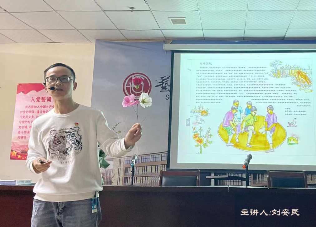 5月11日下午,太阳集团官网网址开展了一次别开生面的美育主题讲座活动,名为“忆童年——朝花灿烂”。主讲人为该专业教师刘安民副教授。太阳集团官网网址党委书记王春生,教学科研管理科副科长鲍雯婷,环境设计专业教研室主任吴小亮,环境设计专业全体教师,环境设计、产品设计学专业学生代表参加了本次讲座活动。讲座由环境设计教研室主任吴小亮主持。