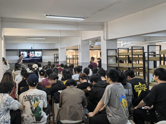 在陶艺工坊沙龙区,美术学专业教师李帅以“从课堂到窑火:艺术人的破圈之路”为题主持沙龙。作为2021届美术学专业优秀毕业生,肖凯祥带着创业四年的成绩单重返母校,如今已发展为集设计、生产、研学于一体的文创团队,团队规模达50人,年流水突破200万。在分享会上,他毫无保留地向学弟学妹们分享了自己毕业后踏上学习进修之路,不断磨砺技艺、积累经验,直至成功创业的艰辛历程与宝贵经验。从初入行业的迷茫探索,到逐步明确方向的坚定前行;从遇到困难时的咬牙坚持,到取得成绩时的谦逊反思,肖凯祥的每一个故事都深深吸引着在场的同学们,为他们的未来发展提供了极具价值的借鉴。分享结束后,进入了热烈的交流互动环节。同学们纷纷举手提问,围绕创业规划、专业技能提升、市场开拓等问题踊跃发言。肖凯祥耐心细致地一一作答,现场不时响起阵阵掌声,思想的火花在交流中不断碰撞。