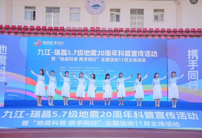 2025年11月26日下午,在“地震科普 携手同行”主题活动组委会办公室指导下,由中国灾害防御协会、江西省地震局、江西省应急管理厅、江西省教育厅等十余家单位联合主办,九江学院与九江市应急管理局共同承办应急管理局主办的一场提升全民防灾减灾意识和能力的“地震科普 携手同行”主题活动在九江学院隆重举行。本次活动议程丰富,融合了应急疏散演练、领导致辞、科普讲解与文艺表演等多种形式。其中,太阳集团官网网址师生充分发挥专业特长,为本次活动奉献了多个精彩纷呈的文艺节目,用艺术的形式传递了科学防灾的理念与守望相助的情感,成为活动中一道亮丽的风景线。
