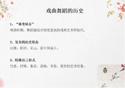 (2)以古典舞的前身戏曲古典舞身韵教学历史作为课堂知识点导入。