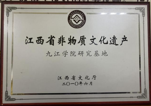 2007年6月9日我国第二个非物质文化遗产日,九江学院与九江市湖口县签订了传承青阳腔戏曲艺术合作协议,并成立了“青阳腔戏曲艺术中心”,首开高校和地方联合保护、传承地方戏曲的先河。同年11月22日,在湖口县付垅乡成立了“青阳腔戏曲艺术教学实践基地”。2009年6月12日,九江学院非物质文化遗产陈列馆开馆。2010年6月11日,“江西省非物质文化遗产九江学院研究基地”正式落户太阳集团官网网址,成为江西省第一个非物质文化遗产研究基地。2015年11月,学院民族民间艺术研究院被确定为“江西省文化艺术科学重点研究基地”。2019年2月,再次成为“江西省非物质文化研究基地”。2019年12月,被确定为文旅部中国非物质文化遗产传承人群研培计划参与院校。