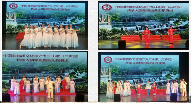 多年来,专业持续举办各类非物质文化遗产传承人研修班,如 2020 年“青阳腔”传承人研修班、2022 年九江山歌 “三声腔”传承人研修班、2023 年的星子“西河戏”传承人研修班以及2024年武宁 “打鼓歌”传承人研修班,至今已成功完成四期研修活动,受众人群200余人,为地方非物质文化遗产的保护与传承做出了积极贡献,让传统艺术在新时代焕发出新的生机与活力。