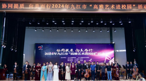自2018年九江交响乐团成立以来,学院持续举办高雅艺术进校园活动,积极打造高端校园文化与美育品牌。与九江市教育局联合主办 “协同提质、向美而行” 巡演音乐会,深入九江市各县区中小学协同推进 “艺术素养提升计划” 等高雅艺术普及项目。通过参与社会公益活动,学生不仅提升文化艺术修养,更锻炼了实践创新能力,增强了社会责任感。