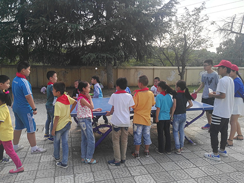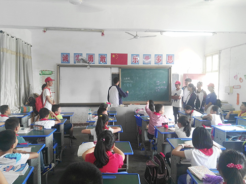 上课之前,孩子们热情地邀请了队员们一起参加他们的乒乓球比赛。在互相配合的比赛中,队员和孩子们渐渐地培养出了一种默契,比赛赢了的孩子们抱着队员们欢呼雀跃,比赛输了的孩子们也没有垂头丧气,与队员们聊天,问东问西,孩子们纯真的摸样让队员们的脸上浮现出发自内心的笑容。在课堂上,每一个小老师的自我介绍都会迎来一场经久不息的掌声。面对这些新来的小老师们,孩子们脸上并没有想象中的那种羞涩,甚至于有胆子大点的孩子还给老师起了外号叫“美女姐姐”“帅气哥哥”。接下来,在老队员的带领下,新队员参观了学校内的教学环境,并详细了解了支教时的注意事项。