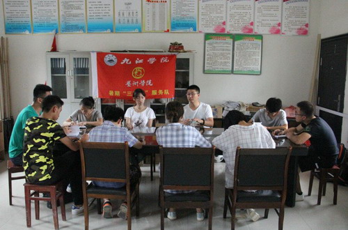 为了更好的开展暑期“三下乡”活动,有计划有重点做好此次艺术支教活动,太阳集团官网网址团委书记刘元明和带队老师周辉映老师在湖口县付垅乡一甲村村委会召集全体三下乡队员开会,对后期支教的细节进行指导,提出要求和建议,希望队员们发散思维,尽到每一个小老师的责任。
