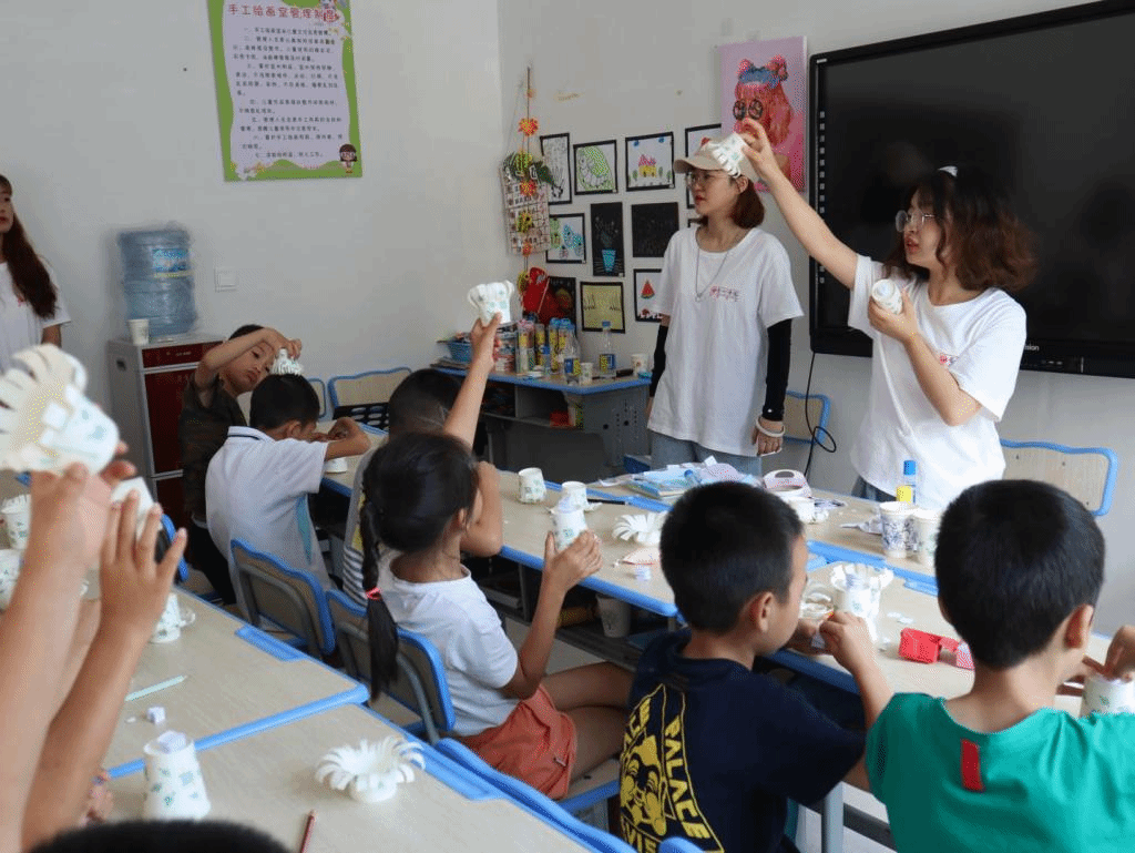 第四天课程结束了,一天的手工课既增进了队员们与小朋友们之间的交流,又激发起小朋友们对手工艺作品的追求与热爱,提高了他们的环保意识。