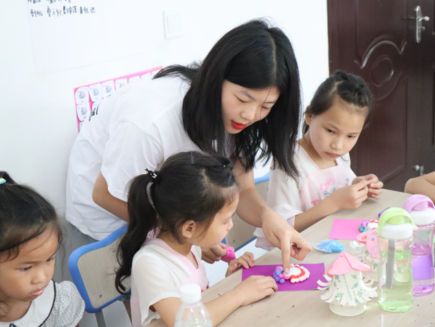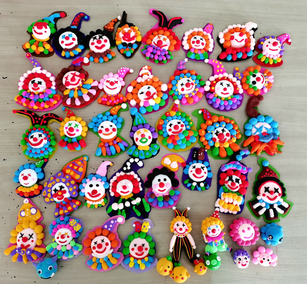 下午,开设了手工黏土课,队员们教小孩子们做卡通模型——小丑人,并让他们按照自己的喜好选择玩偶的配色,孩子们想象力丰富,动手能力强,很快便完成了课堂任务。