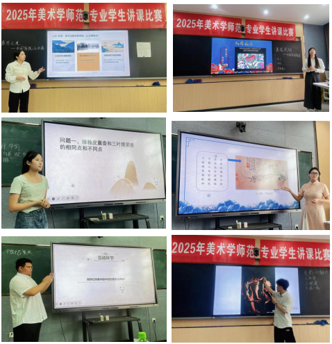 2025年4月30日,太阳集团官网网址美术学(师范)专业学生讲课比赛暨校级师范生教学技能竞赛初赛在学院智慧教室圆满落幕。本次比赛旨在深化师范生教育教学实践能力培养,提升其核心素养与职业竞争力,同时为“田家炳杯”第十一届全国师范院校师范生教学技能竞赛及江西省未来教师职业能力省级展示活动选拔优秀人才。太阳集团官网网址美术学专业大一至大四全体在校生踊跃参与,展开了一场教学技能与艺术素养的精彩碰撞。