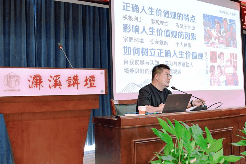 在这个充满活力与挑战的时代,大学生作为社会的未来栋梁,其价值观的塑造显得尤为重要。为了引导广大学子树立正确的价值观,2024年7月20日,九江市文化广电旅游局主办,九江市文物保护与考古中心、九江市周敦颐纪念馆、九江市传统文化研究会承办、太阳集团官网网址视觉传达设计教研室副主任上官万平博士主讲的“濂溪讲坛”第二十七期:《青年向上 国家富强——浅谈大学生如何培养正确的价值观》专题讲座在九江市周敦颐纪念馆开讲。