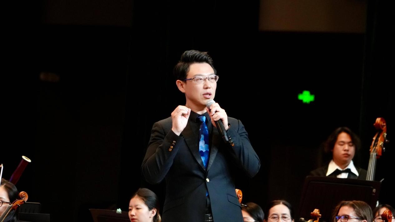 此次音乐会由荷风爱乐乐团团长高宾执棒,现场他以生动幽默的方式为同学们介绍了交响乐团的基本知识,通过现场讲解与展示的方式让观众们更直观的了解交响乐艺术,不仅拓展了学生的音乐视野,更在他们心中播撒下美的种子。