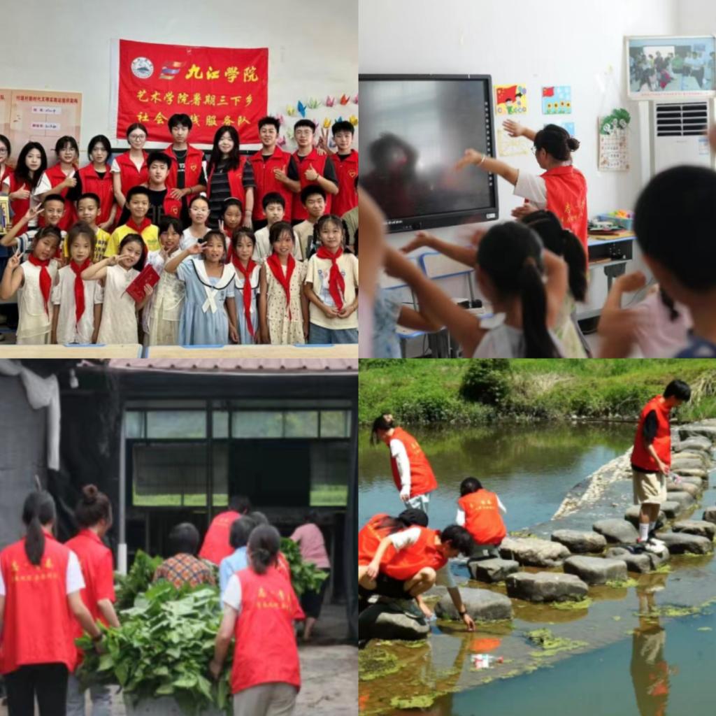2025年暑期,“三下乡”志愿者服务队深入抚州乐安县,将傩舞非遗传承、桑蚕文化传播与生态环境保护相结合,用艺术赋能乡村振兴,展现了新时代青年的责任与担当。服务队还深入湖口县付垅乡,开展了为期10天的青阳腔非遗传承与乡村支教活动。队员们将戏曲身段融入舞蹈教学,用剪纸、粘土创作解读脸谱文化,在乡村儿童心中播撒下非遗传承的种子。活动中,队员们不仅向市级代表性传承人饶江钗系统学习青阳腔的唱腔特色与“滚调”艺术,更创新设计了“戏曲+手工”、“戏曲+体育”等趣味课程,让“戏曲活化石”在互动体验中焕发新生。当地村民纷纷点赞:“大学生把高雅艺术送到家门口,让孩子们感受到了传统文化的魅力。”2025年11月,学院青年志愿者服务队走进东城小学,开展“艺绘童年,筑梦同行”美育支教活动,通过“四季的色彩”“创意绘画”等六类主题课程,为乡村儿童播撒艺术种子,这些实践经历让学生在求学期间便深刻体会到“艺术源于生活、服务人民”的真谛。